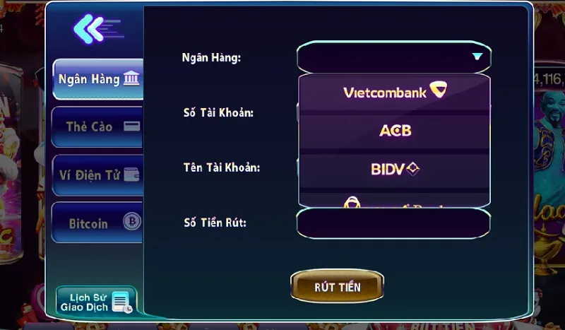 Thứ hai là thao tác rút tiền, đây không phải là một thao tác bắt buộc thế nhưng lại là thao tác game thủ mong muốn được thực hiện nhiều nhất khi chơi game đổi thưởng trực tuyến.